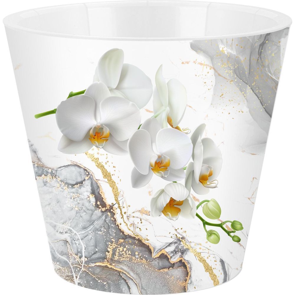 Горшок для цветов InGreen London Orchid Deco D160 мм, 1,6 л с дренажной вставкой, белая орхидея (упа