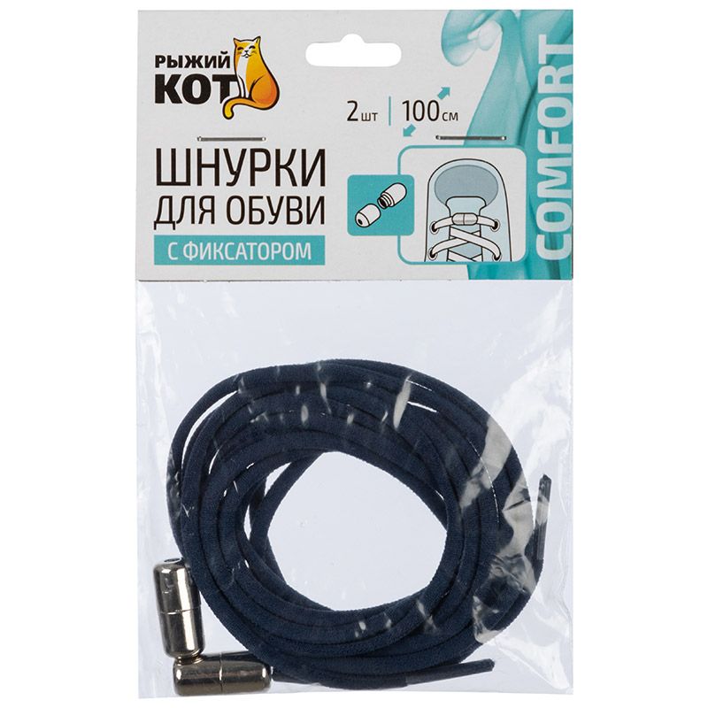 Шнурки для обуви с фиксатором эластичные, темно-синие (упаковка 12 шт.)