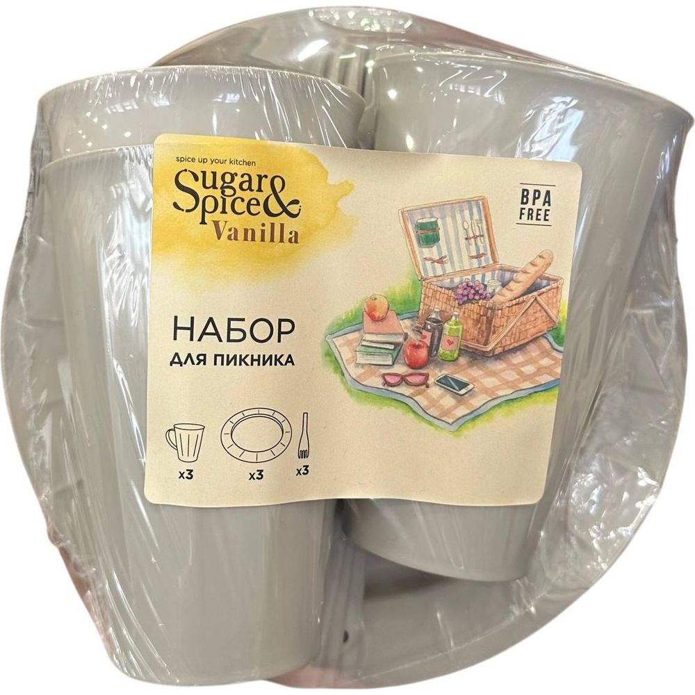 Набор для пикника Sugar&Spice Vanilla на 3 персоны (9 предметов) латте (упаковка 8 шт.)