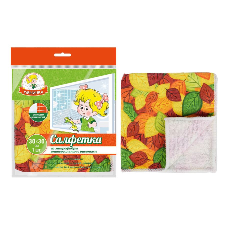Салфетка УНИВЕРСАЛЬНАЯ с рисунком Умничка Микрофибра 30*30см 1шт. (упаковка 60 шт.)