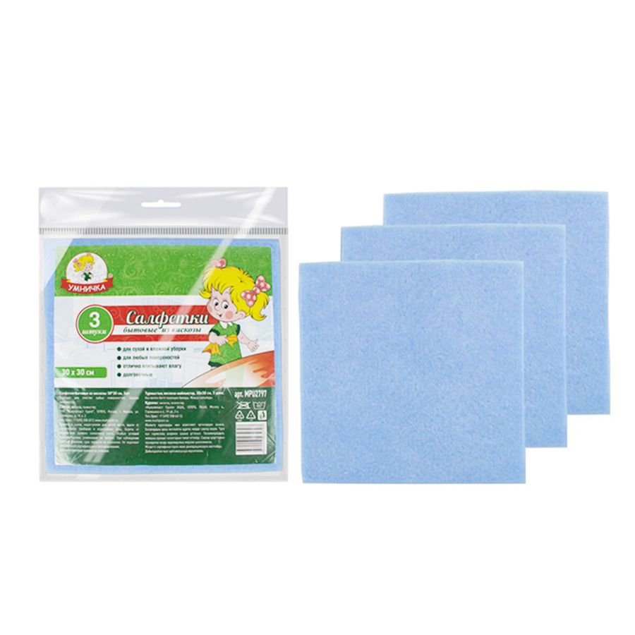 Салфетки быт. Умничка вискоза 30*30см 3шт. (упаковка 50 шт.)
