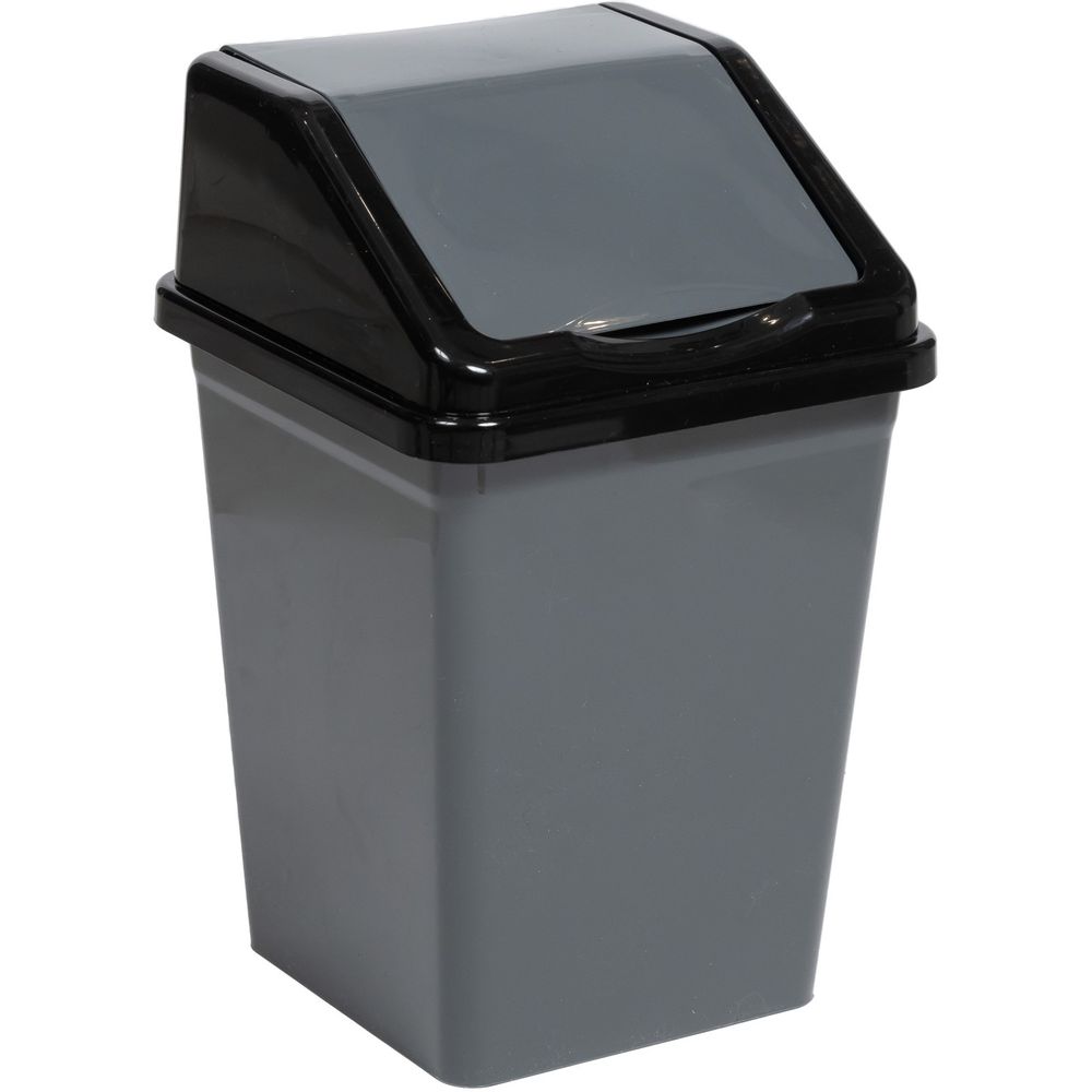 Ведро для мусора с подвижной крышкой 5л квадратное (серо/черный)