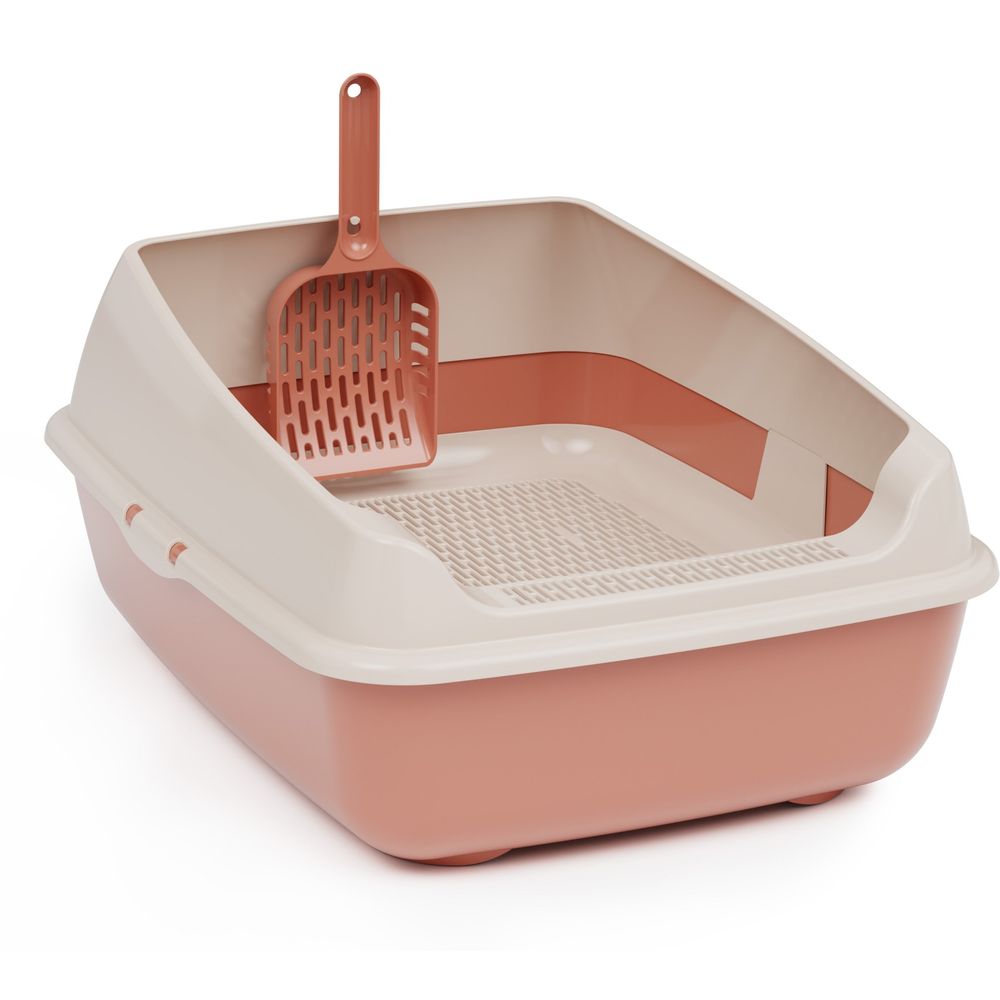 Лоток туалет для кошек Эффи, с высоким бортиком,сеткой и совком, ALTA, Терракотовый (упаковка 4 шт.)
