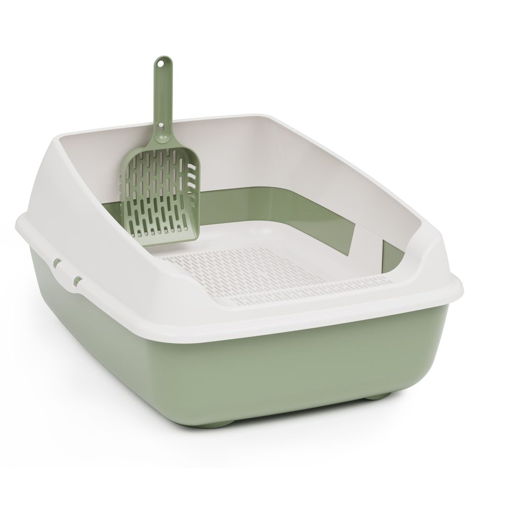 Лоток туалет для кошек Юта, с высоким бортиком, сеткой и совком, ALTA, Оливковый (упаковка 4 шт.)