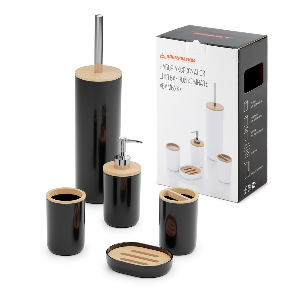 Набор аксессуаров для ванной комнаты Бамбук (черный) (упаковка 4 шт.)