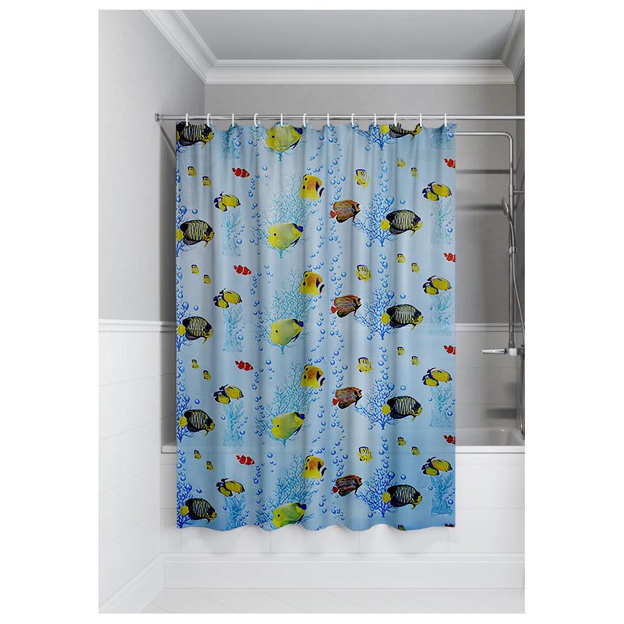 Штора полиэтилен 180х180 Кораллы/Рыбки (упаковка 40 шт.)
